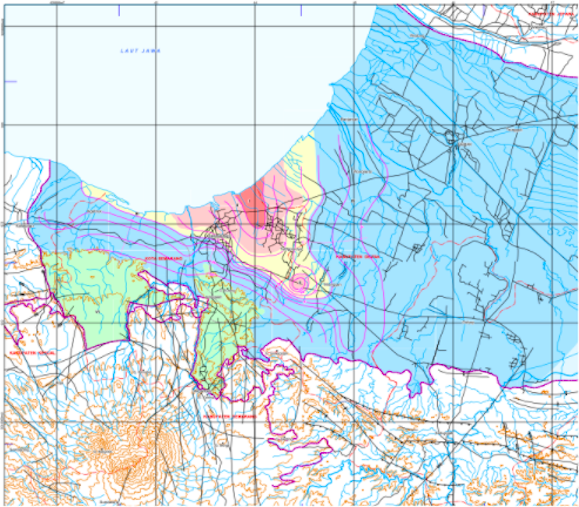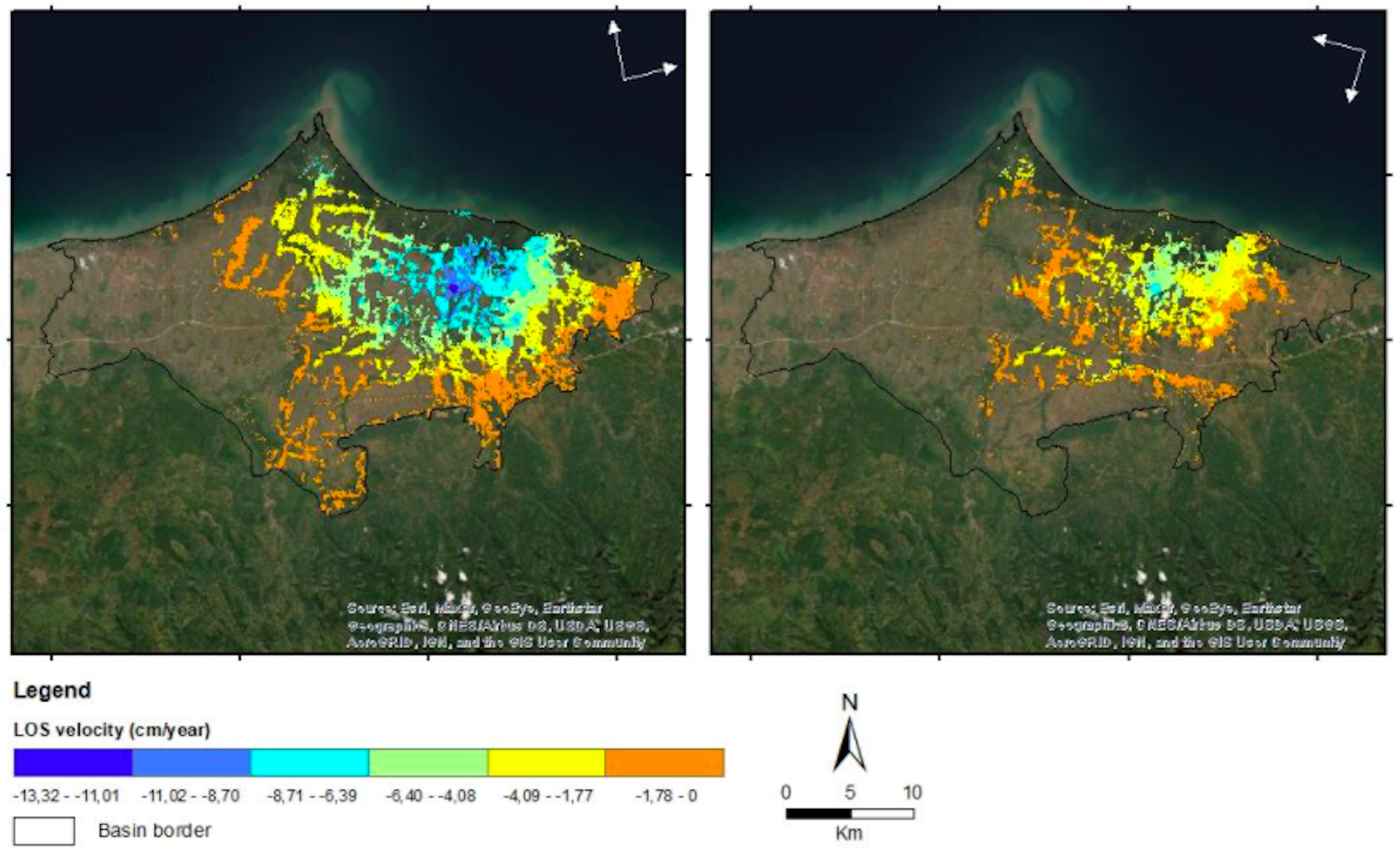 Penurunan tertinggi berada di daerah utara yang merupakan daerah tambak atau pertanian. Ada juga beberapa titik penurunan lainnya di kawasan permukiman dan industri.