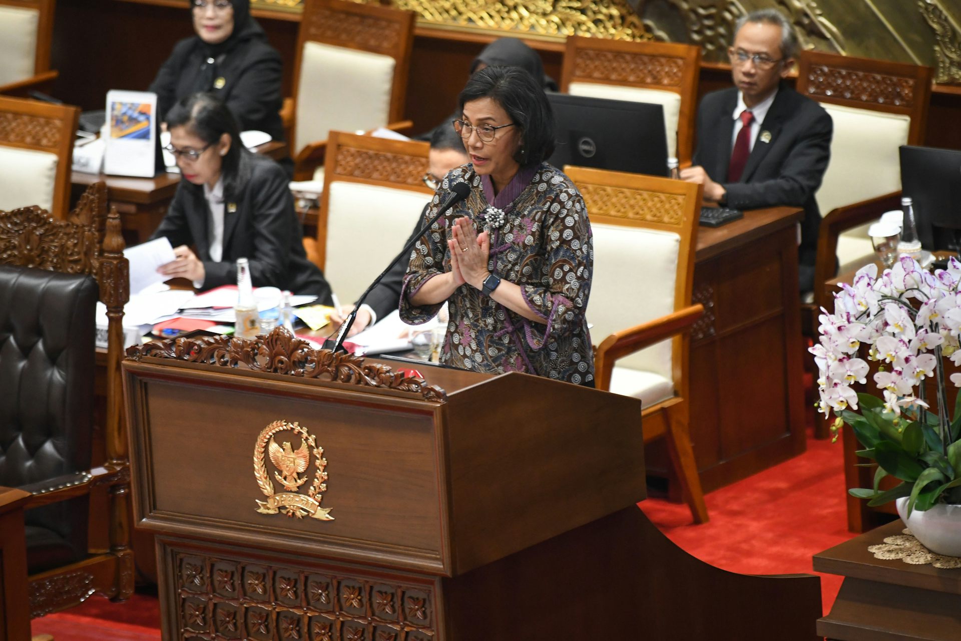 Menteri Keuangan, Sri Mulyani, dalam Rapat Paripurna DPR ke-19 Masa Persidangan V 2023-2024, Selasa 4 Juni 2024.
