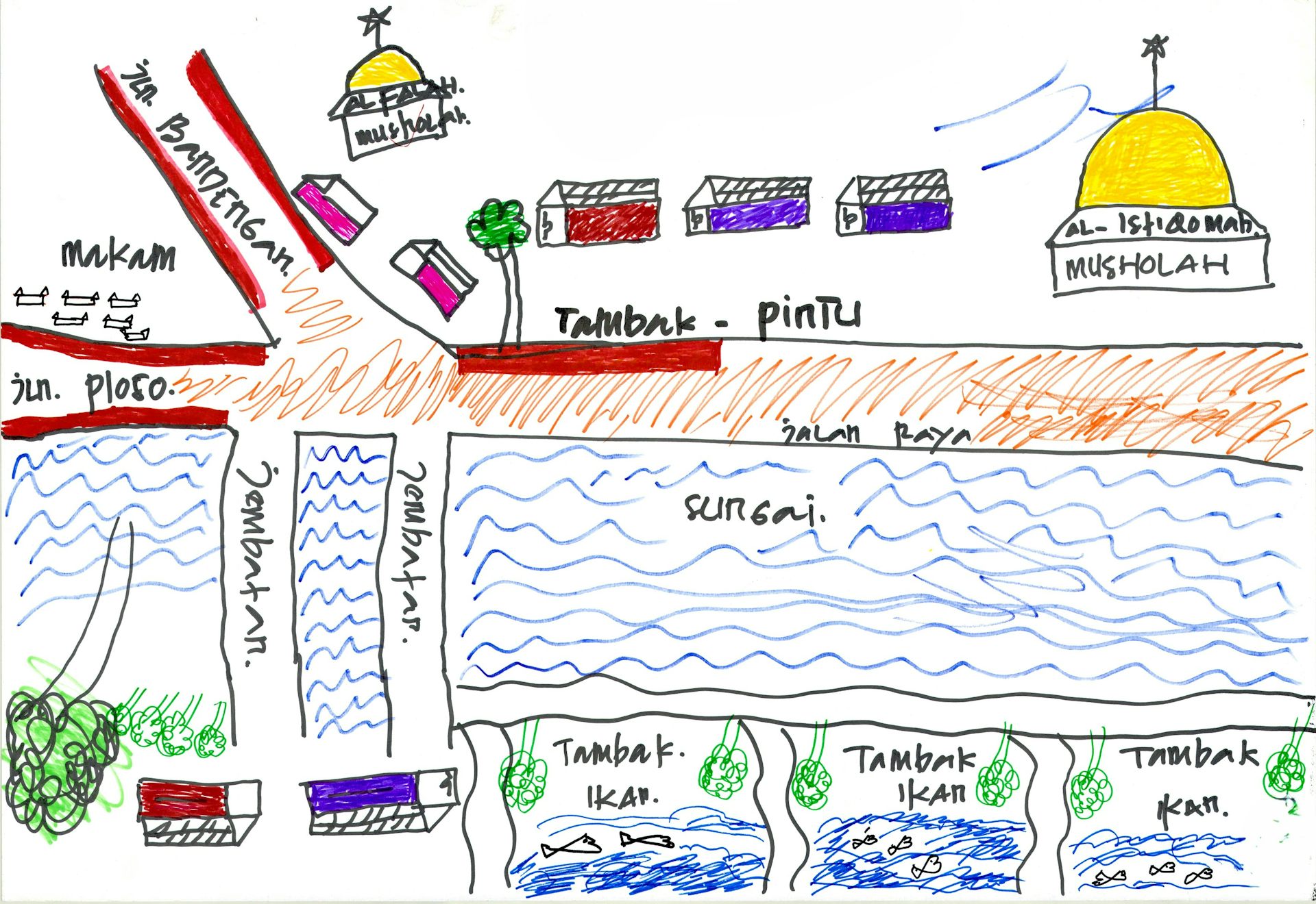Gambar di atas dibuat oleh komunitas perempuan nelayan Puspita Bahari selama saya melakukan penelitian dengan metode Feminist Participatory Action Research (FPAR)[8] pada Mei 2024.