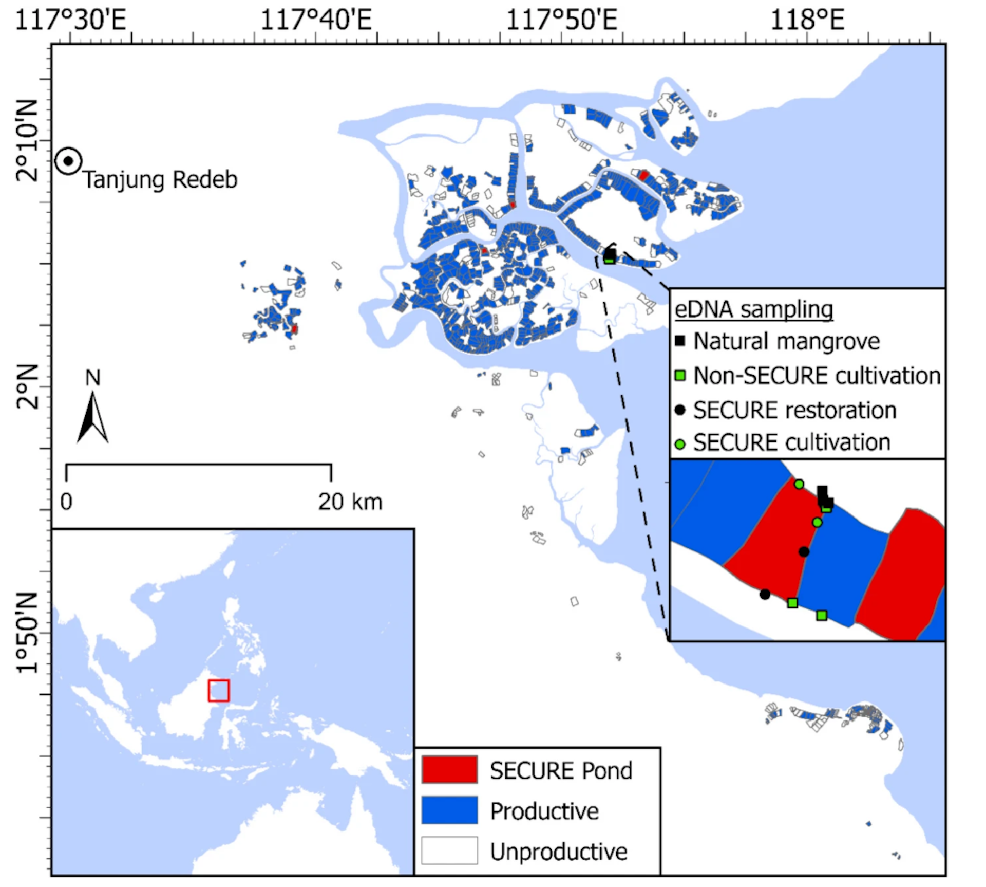 Kami juga menguji kesehatan ekosistem tambak SECURE dengan menggunakan teknologi DNA lingkungan (eDNA).