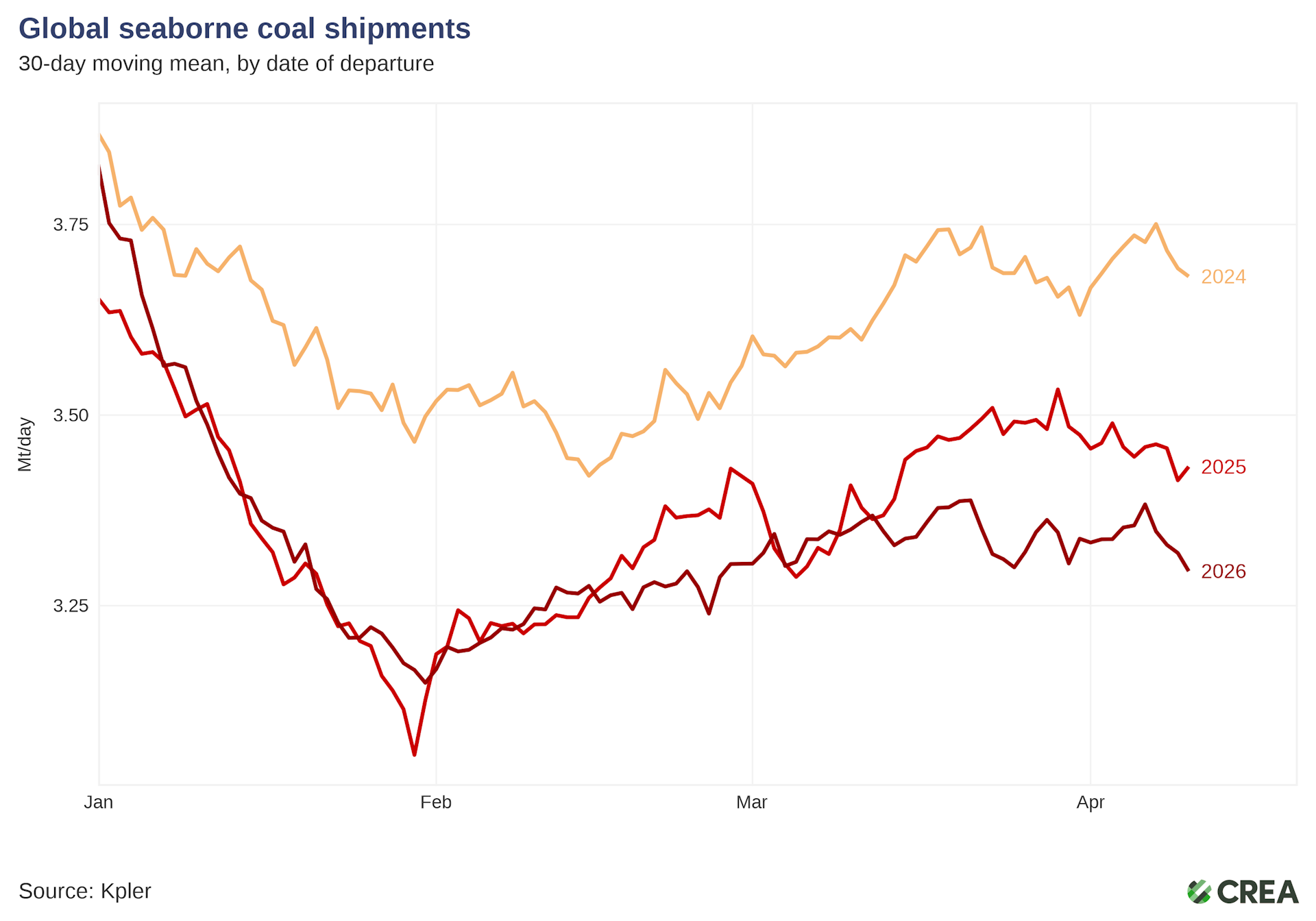 Volume pengangkutan batu bara melalui jalur laut juga turun 3%, mencapai level terendah sejak 2021, dengan penurunan tajam dalam pengiriman ke Cina, India, Turki, dan Vietnam.