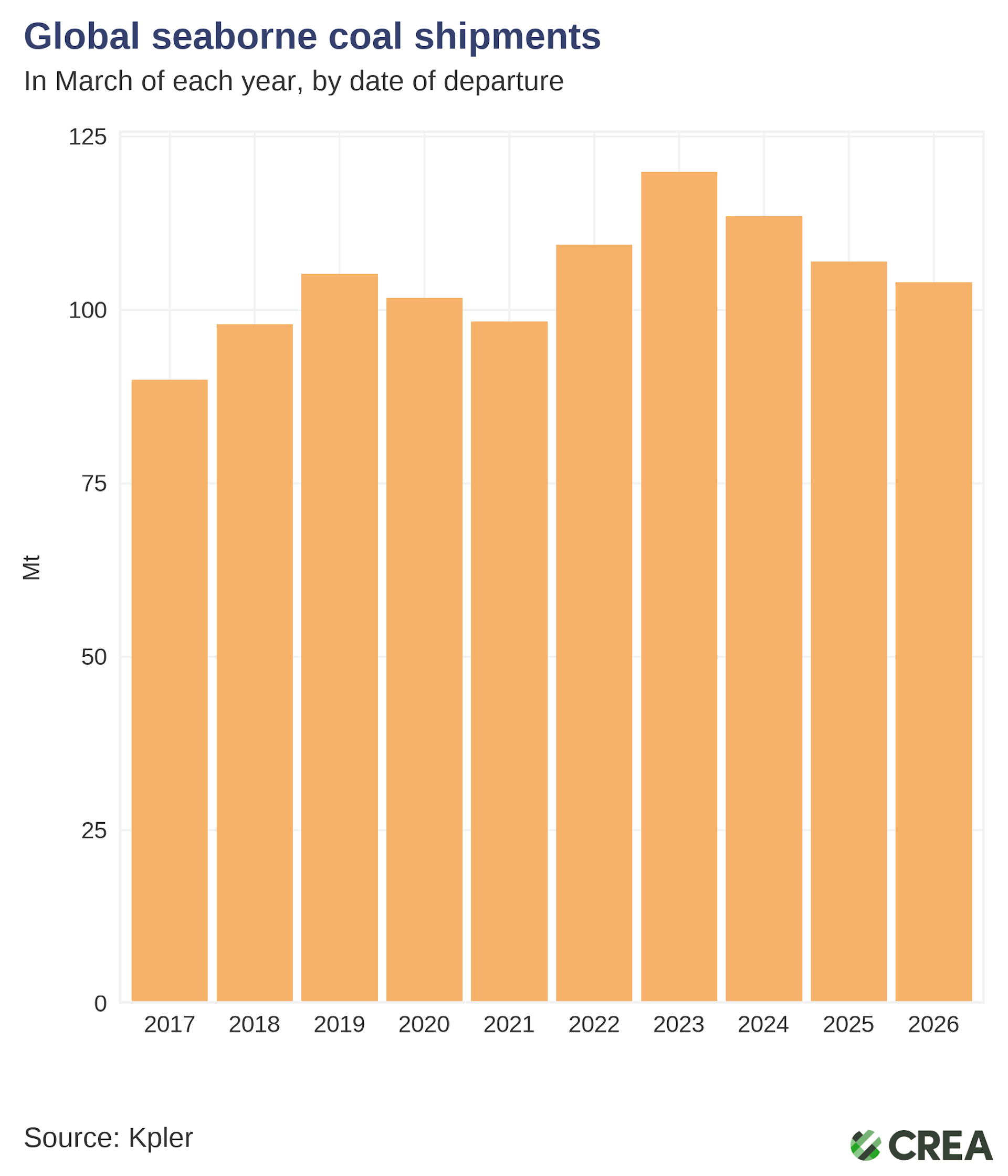 Sebelumnya, laporan International Energy Agency (IEA) sudah memproyeksikan[5] konsumsi batu bara dunia akan mulai menyusut pada 2026 dan kembali di bawah level 2024.