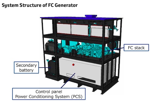 By using components from the Mirai FC system, such as the FC stack, power control unit (PCU), and secondary battery, Toyota seeks to produce a high-performance generator at a reasonable price. Development on the FC generator was carried out jointly by Toyota and Toyota Energy Solutions, Inc.