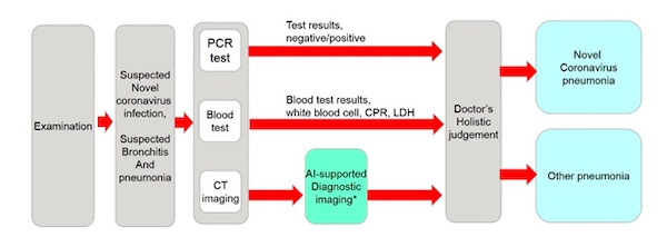 When treating patients who are strongly suspected of having a novel coronavirus infection, the diagnosis and treatment plan are determined holistically based on PCR test results as well as other test results including blood tests and chest CT test (Figure 1). Even if the PCR test is negative, the diagnosis of new-onset coronavirus pneumonia can be made by other tests, and imaging with chest CT is an important consideration.