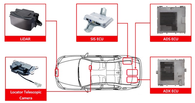DENSO's newly developed products used in Advanced Drive include LiDAR for detecting the shapes of surrounding vehicles and roads; a Locator Telescopic Camera for detecting the environment ahead of the vehicle; an Spatial Information Service Electronic Control Unit (SIS ECU) for accurately identifying the position of the vehicle itself; and an Automated Driving System Electronic Control Unit (ADS ECU) and Automated Driving Extension Electronic Control Unit (ADX ECU) for high-speed processing of information delivered these products. The SIS ECU, ADS ECU, and ADX ECU also support over-the-air software updates, which expands the functionality and improves performance of Advanced Drive after vehicles are sold to users.