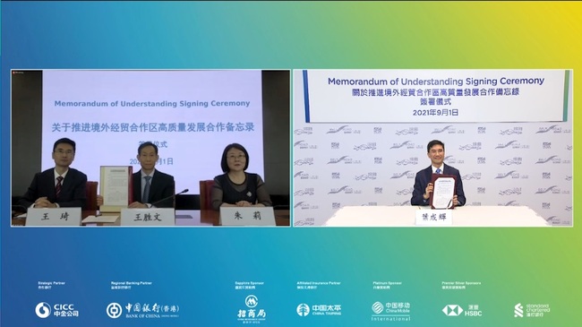 | During the summit, a memorandum of understanding was signed between the HKSAR Government and the Ministry of Commerce on enhancing co-operation in promoting the development of the mainland's overseas Economic and Trade Co-operation Zones. |