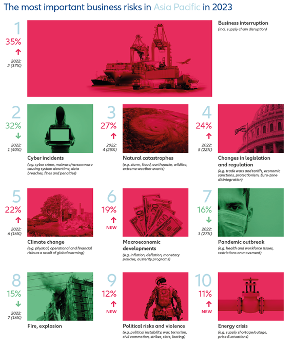 Allianz Risk Barometer 2023: Business interruption and cyber top threats in Asia Pacific as economic and energy risks rise globally