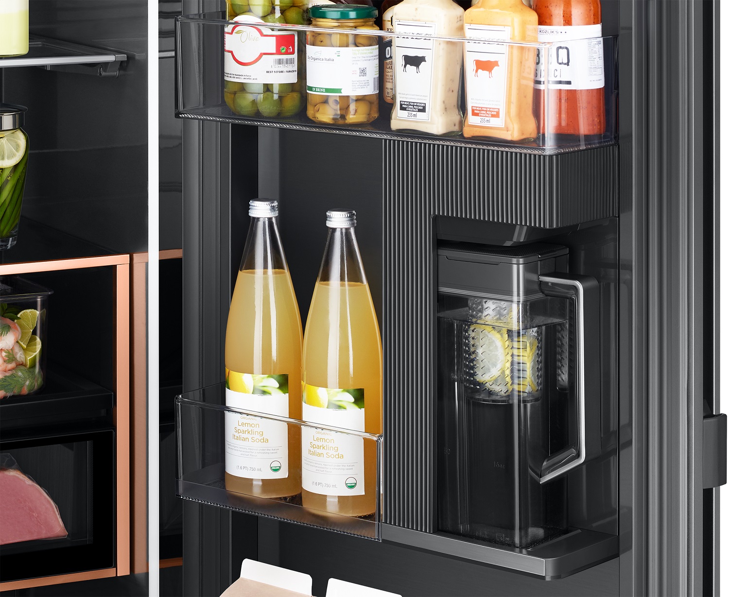 A 1.4-liter AutoFill Water Pitcher found in the Bespoke Infinite Line 1-Door Fridge enables users quick and easy access to refreshing, cold filtered water, anytime. The dishwasher-safe[4], BPA-free[5] AutoFill Water Pitcher automatically fills with filtered water as soon as it is placed in the fridge. It also offers the option to create deliciously flavoured beverages by adding any fruits or herbs in its built-in infuser.[6]