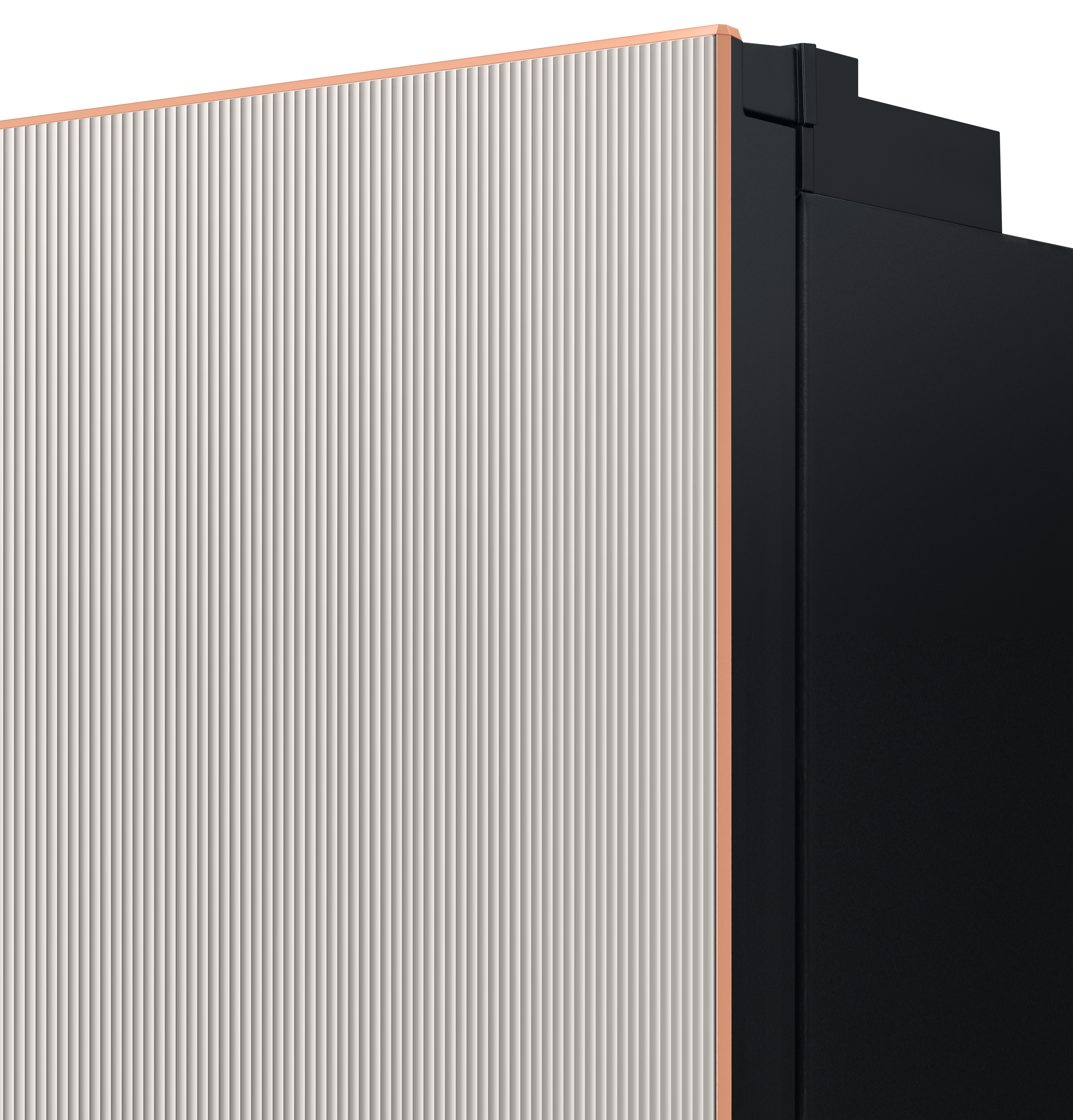 With a timeless aesthetic that reflects the latest trends, the Bespoke Infinite Line is built to last. Distinguished by its refined lines, the Infinite Design harmoniously blends into modern kitchens and will stand the test of time. Its smooth surface, metallic Timeless Greige finish with premium aluminium exterior, are complemented by an elegant gold copper-edged frame.