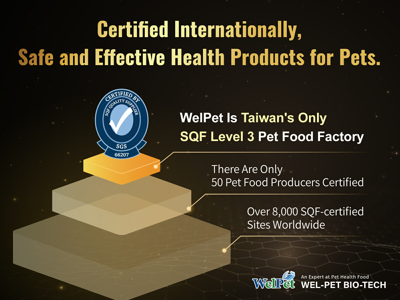 At WelPet, in addition to high-quality pet supplements, we collaborate with vets to promote pet health literacy. Our OEM/ODM one-stop services ensure all products are of high quality and marked with the SQF quality shield. WelPet also invites industry elites interested in pet health food to visit and assures the most rigorous processes and services to ensure pet health.