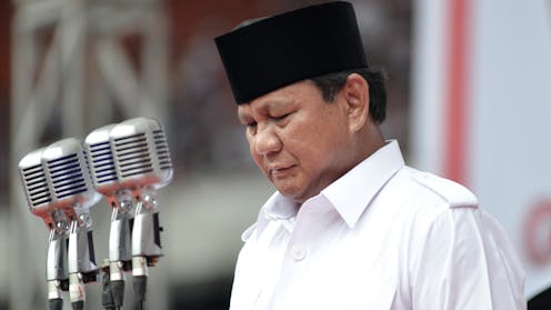 Prabowo Subianto berdoa saat kampanye akbar di Stadion GBK, Jakarta, pada 23 Maret 2014.MRNPic/Shutterstock● Pemerintahan Prabowo kerap menerbitkan kebijakan tanpa berdasarkan data dan bukti emp...